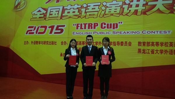 2015年10月31日,2015“外研社杯”全国英语演讲大赛黑龙江省复赛在黑龙江云顶国际yd333隆重举行,公司共派出3名选手参加此次比赛。经过为期一天的激烈的角逐,云顶国际yd3332013级英语专业孙稼宝同学获得英语演讲大赛一等奖;2013级英语专业刘洋同学和2014级农林经济管理专业张慧娴同学双双获得二等奖。