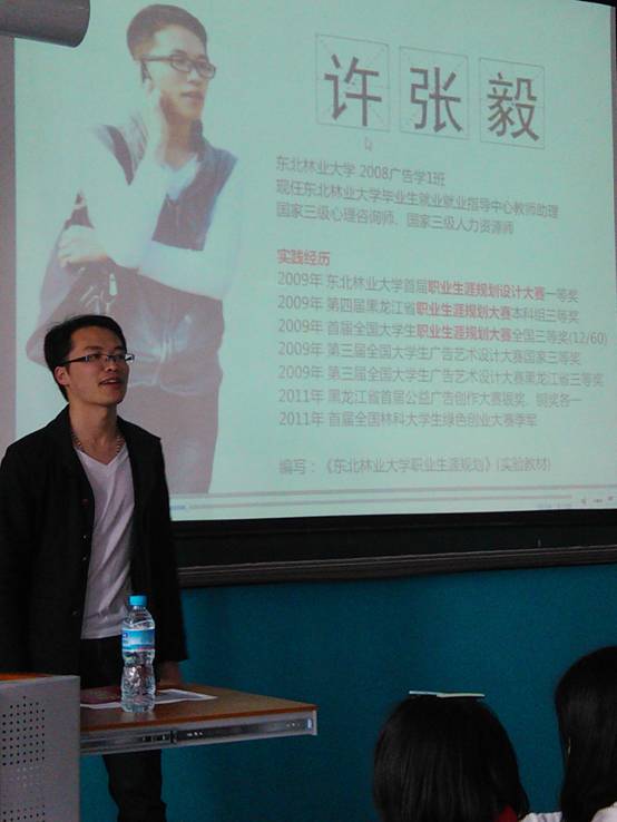 2012年5月16日,云顶国际yd333团委科技部在锦绣楼308室举办了职业生涯规划大赛培训讲座,主讲人是文法学院08级许张毅同学,玄凌老师作为年级辅导员出席,并带领09级共55名同学参加了培训讲座。