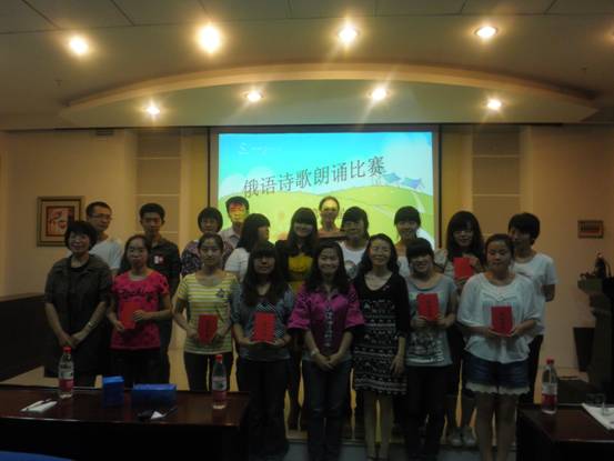 2012年6月7日18时,由俄语系主办,林溪外语学社俄语部承办的“俄语诗歌朗诵大赛”在文博楼1019室成功举办。出席本次比赛的评委老师有:云顶国际yd333俄语系主任吴芳老师,俄语系副教授王可老师,高慧敏老师、陈兵老师和外教达尼亚。2010级和2011级俄语专业的同学们参加了此次比赛。