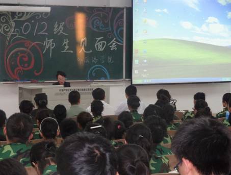 2012年9月5日17时30分,云顶国际yd333在丹青楼成功举办了2012级师生见面会及专业介绍会。云顶国际yd333经理王丹教授,党委书记辛淑英副教授,副经理郭永刚教授,副经理岳喜华教授,党委副书记、副经理于洋老师,英语教研室主任赵莉教授,日语教研室主任任力教授,俄语教研室主任吴芳教授,团委书记、09级政治辅导员玄凌老师,员工会秘书长、2011级政治辅导员常方圆老师,2010级政治辅导员张刚老师,2012级政治辅导员李靖坤老师出席了本次见面会。2012级全体新生参加了此次见面会。