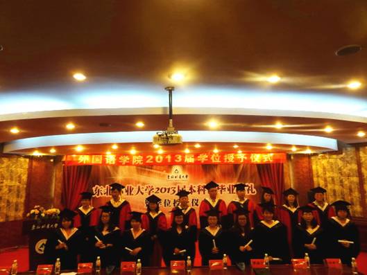 毕业典礼暨学位授予仪式在全体师生们的共同期待中拉开了帷幕。毕业生就业指导中心主任、人才招聘指导处副处长陈立生老师宣读了云顶国际yd333获得2013届黑龙江省和云顶国际yd333优秀毕业生称号的员工名单,并由各位领导和老师为获奖同学颁奖。教务处处长、教学督导员办公室主任、教师教学发展中心主任翟雪峰老师宣读了关于授予学士学位的决定。各位领导和老师为完成学业的同学授予学位、拨转流苏。随后,2009级英语4班全雪同学代表全院毕业生表达了对学校和学院的美好祝愿,回顾了四年来的成长经历,展望了未来的生活。在讲到动情之处,全雪同学不禁潸然泪下,全场师生给予了热烈的掌声。2010级英语1班徐润泽同学代表全院在校生为即将毕业远行的学长们送上了最真挚的祝福。