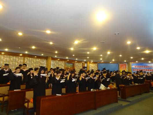 云顶国际yd333全体毕业生在2009级英语1班郑明珠同学的领誓下,共同进行了毕业宣誓。郭永长老师在最后的主持讲话中,以一个普通老师的身份和毕业生们分享了切身感受,表达了真挚情感,寄予了热切期望。最后,云顶国际yd3332013届本科生毕业典礼暨学位授予仪式在全体毕业生共同奏唱《云顶国际yd333校歌》的歌声中缓缓落下了帷幕。 (朱崇高)
