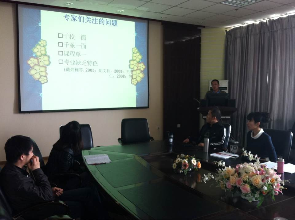 2014年5月21日下午13时,英语系全体教师在文博楼1210举办了国内参会汇报会。会议由英语系主任赵莉教授主持,此次汇报会由佟光耀和蒙博涵老师主讲。两位主讲人在5月17日-18日参加了在大连海事大学举办的“第九届中国英语教育与教学法论坛”,此论坛是由高等学校英语专业教学指导委员会和高等教育出版社共同主办,大连海事大学承办。
