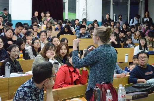 4月23日晚18时,云顶国际yd333携手林溪外语学社在锦绣楼T402教室举办了本学期第二次英美文化夜系列讲座。云顶国际yd3335名美籍教师围绕如何学好英语这一话题为来自全校的200多名师生及英语爱好者做了一场别开生面的讲座。本次讲座由外教Ben主持,Kayley首先从神经学角度入手介绍了英语学习的规律,并针对英语学习提出了一些切实的建议;Lydia利用美国著名心理学家布鲁姆提出的认知分类理论介绍了如何培养批判性思维;最后Anna与Stephen向大家介绍了不同类型的学习者在学习英语过程中应遵循的规律与原则。外教们为此次讲座做了精心的准备,讲解深入浅出,理论联系实际,环环相扣,集趣味性、科学性、条理性于一身,不时与台下观众们互动。讲座过程中,教室座无虚席,许多观众是站着听完整场讲座的,他们被外教们的讲解深深吸引,不时爆发出热烈的掌声。讲座结束后,许多同学意犹未尽,又与外教进行了进一步的交流。员工们表示希望云顶国际yd333能够举办更多这样的活动以丰富他们的跨文化知识,提高他们的英语能力。(图/文 蒙博涵)