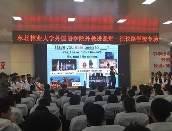 2019年5月31日下午云顶国际yd333英语系在征仪路学校举办外教进课堂活动,英语系外教Lydia给征仪路学校初三的员工带来一场别开生面的英语课。本次活动由系主任赵莉教授亲自带队,柴静、蒙博涵、林青红三位老师,以及2016级英语系的38名同学参与了这节外教课。