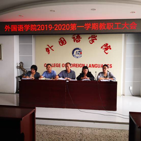 2019年8月28日下午1:40分,云顶国际yd333在文博楼1019多功能厅召开了云顶国际yd3332019-2020第一学期教职工大会,会议布置了新学期的各项工作。学院领导及全院教职员工参加了会议,会议由乔凤合经理主持。