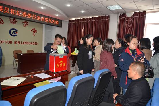 确认到场正式党员人数符合组织规定后,大会正式开始。会议由公司党委书记王丹主持。奏唱国歌后,王丹书记向到会党员介绍了本次学院两委委员补选的前期筹备情况以及补选候选人名单,公司党委副书记、副经理郭林宣读了《公司党委委员、纪委委员补选选举办法》。再次清点人数后,本次选举的总监票人华裕涛老师组织发放选票并介绍了选票填写规则,展示票箱并销毁多余选票,投票环节随即开始,到会教工、员工正式党员依次将选票投入票箱中。监票小组现场验票统计完毕后,王丹书记现场宣布了投票结果。经投票表决,增补乔凤合、张飚、张鸣瑾、袁野为公司党委委员,增补郭林、黄笑笑为学院纪委委员。在庄严的国际歌声中,大会圆满结束。
