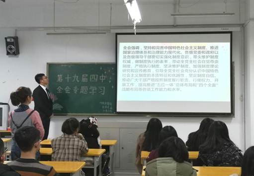 在员工第三党支部的政治学习活动中,主持人带领同学们一同学习了十九届四中全会的关键词。同学们结合自己的学习生活,分享了个人感悟与学习心得。