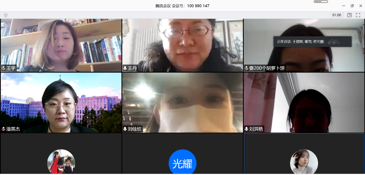 3月27日笔译答辩委员会由赵莉教授、王军副教授、祁玉龙副教授、陈先贵副教授、齐艳副教授、翟舒副教授组成,佟光耀老师任答辩秘书。3月28日笔译答辩委员会由赵莉教授、王军副教授、陈先贵副教授、齐艳副教授、王培松副教授组成,曲兰老师任答辩秘书。3月29日口译答辩委员会由王丹书记、张鸣谨副经理、赵莉教授、齐艳副教授、王宇副教授组成,佟光耀老师任答辩秘书。2020届翻译硕士全体毕业生参加了本次论文答辩会。