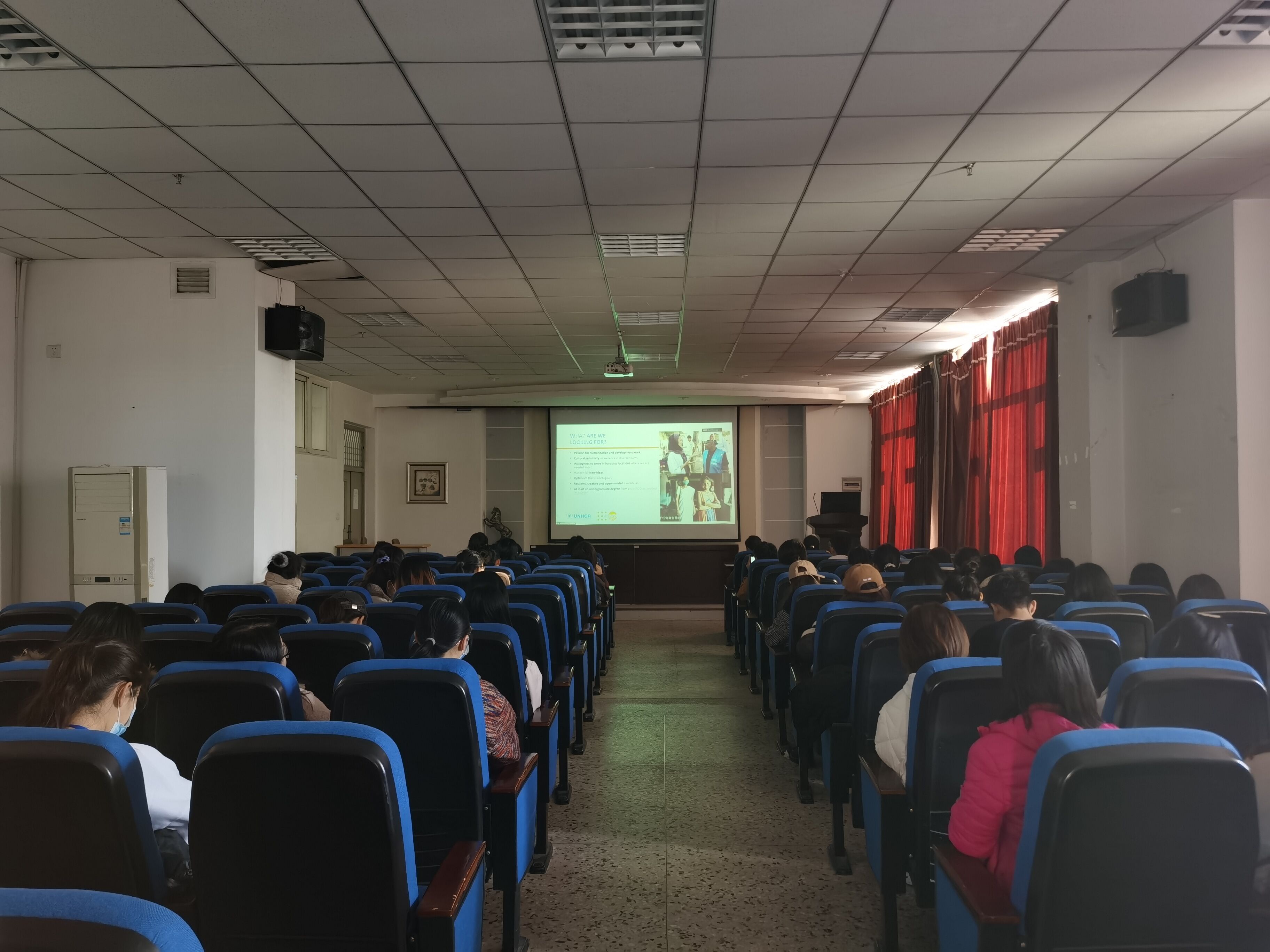 11月1日8点30分,第二届联合国机构宣讲咨询活动之国际组织技能培训在文博楼1019报告厅举办,学院专业课教师、全体研究生及部分毕业年级本科生参加了课程学习。