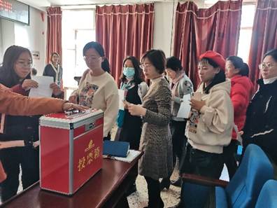 李梦阳主持选举云顶国际yd333出席第七届教职工代表大会暨第十四次工会会员代表大会代表投票环节。由计票同志清点到会教职工人数,填写《清点人数报告单》,云顶国际yd333共有教职工109人,此次会议共参会教职工100人,符合选举要求。经过差额选举,最终选举出席第七届教职工代表大会暨第十四次工会会员代表大会代表为王丹、王晓妍、王晚明、齐艳、张彪、张鸣瑾、陈志伟、金晓满、郭林、董辉、董晓烨十一位同志。(按姓氏笔画排序)