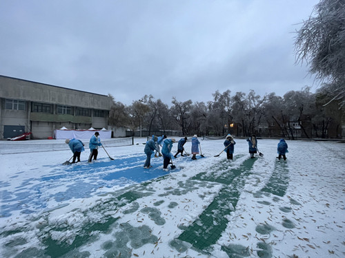 此次劳动教育实践活动的主要内容是清扫文博楼前以及网球场的积雪,同学们不畏天气的恶劣,即使摔倒了,也仍然站起来继续劳动,劳动的身影穿梭在林间、雪地中,他们以饱满的热情抵御着严寒,用自己的双手清除道路上的冰雪,为广大师生清扫出一条安全的道路,创造出一处开阔明亮的场地,保障师生出行安全,真正做到“以雪为令,雪下人动,人动雪清”。