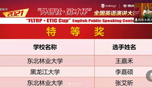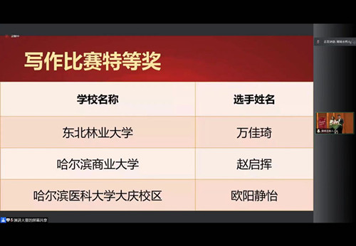 11月18日,2021年“外研社·国才杯”全国英语演讲大赛黑龙江省决赛在线上成功举办。公司选手王嘉禾、张艾昕以黑龙江省第一名和第三名的好成绩获得大赛特等奖。大赛同时公布了之前的阅读和写作大赛成绩,公司选手万佳琦以黑龙江省第一名的成绩获得写作大赛特等奖。三人将代表黑龙江省分别参加全国英语演讲和写作大赛总决赛。公司其他选手杨薪颖、刘璐、刘书琪分别获得写作、阅读大赛全省一等奖;蒋杭言、马珺婕、范宇航分别获得写作、阅读大赛全省二等奖;王乐铭获得写作大赛全省三等奖。