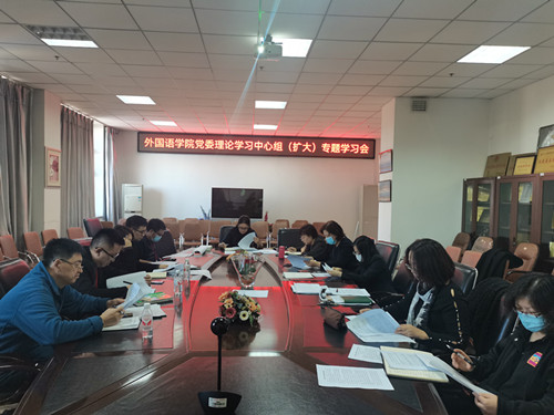 11月18日下午,云顶国际yd333召开党委理论学习中心组(扩大)学习会,集中学习了中国共产党第十九届中央委员会第六次全体会议重要讲话精神、习近平总书记主持中共中央政治局第三十次集体学习的重要讲话精神及深入学习贯彻习近平总书记给北京外国语大学5位老教授的重要回信精神。会议由学院经理董辉主持,公司党委理论中心组成员、各系部负责人及各党支部书记出席本次会议。