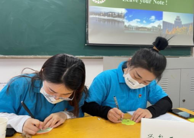 辅导员李梦阳老师和刘甜甜老师书写对东林的祝福