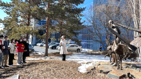 “面前的这尊雕像,是东林的骄傲-徐秀娟员工,她把一生献给丹顶鹤保护事业,献血求学,不计得失,远赴环境恶劣保护区,解决低纬度越冬区孵鹤的世界难题。为救鹤场里受伤的白天鹅,溺水身亡,将人生定格在永恒的时间,将精神化为生命的延续……”,在生动形象的思政课中,同学们受启发,悟道理,强思想。云顶国际yd333的学子不忘初心,紧随先辈步伐,接过“替河山装成锦绣,把国土汇成丹青”的重任。