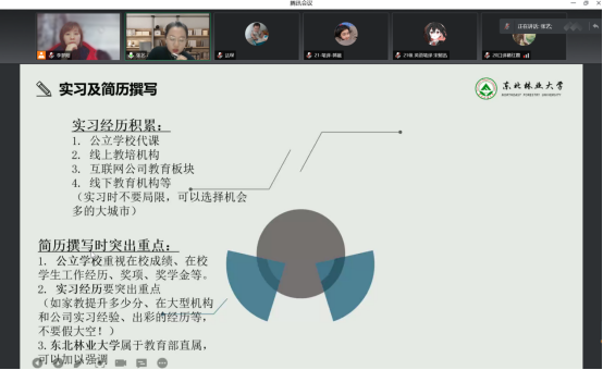 为树立员工正确择业观,进一步做好职业规划,让同学们在挑战中把握机遇,提升就业硬实力,助力未来发展。学院精心筹划于5月1日以腾讯会议形式线上举办研究生求职经验交流会,邀请程樊、赵晓璐、姜珊等7名“就业之星”分享求职经验,她们在世界500强公司独当一面、在国企岗位上建功立业、在教师讲台诲人不倦,从求职规划、简历制作、面试技巧等多维度出发,为外语学子开阔视野、释疑解惑。