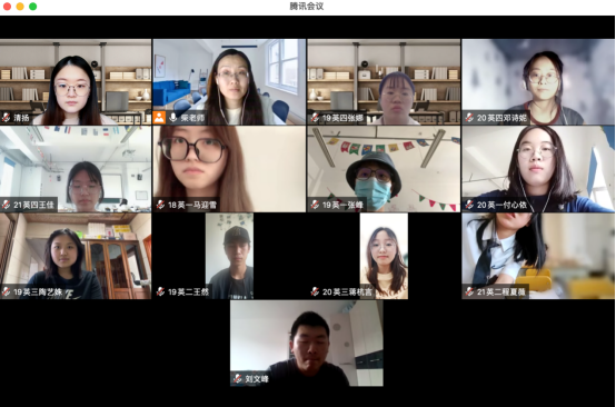 2022年5月18日下午15:00,英语系各年级班级代表在线上参加了本学期的员工座谈会活动,本次活动由英语教研室主任柴静主持。