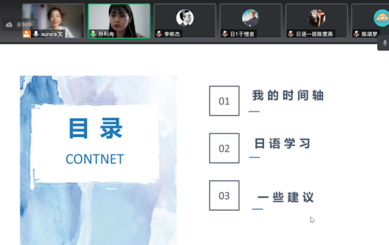 2022年5月25日下午,2021-2022学年度日语系学习经验分享会以腾讯会议的形式顺利召开,会议历史近3个小时。莅临本次会议的有日语系主任姚晓丽老师,赵丽莉老师和文慧超老师。日语系优秀员工代表以及日语系大一全体员工参会。