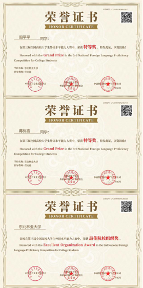 公司选送的七名英语专业员工在第三届全国高校老员工外语水平能力大赛总决赛中取得优异成绩,其中周平平、蒋杭言夺得特等奖,张玉龙、黄俊康获得一等奖,陈佳玟、徐梓萌、王星卓分获二等奖,公司获得最佳院校组织奖。