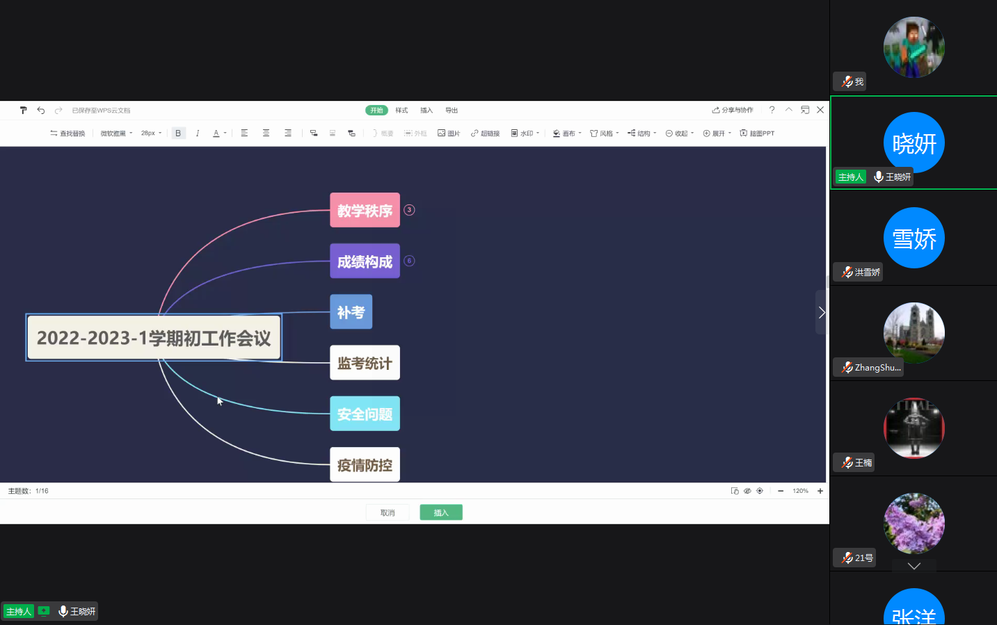 2022年8月25日13点30分,大学英语第一教研室以钉钉会议形式举行工作会议。本次会议由教研室主任王晓妍主持,全体教师参会。