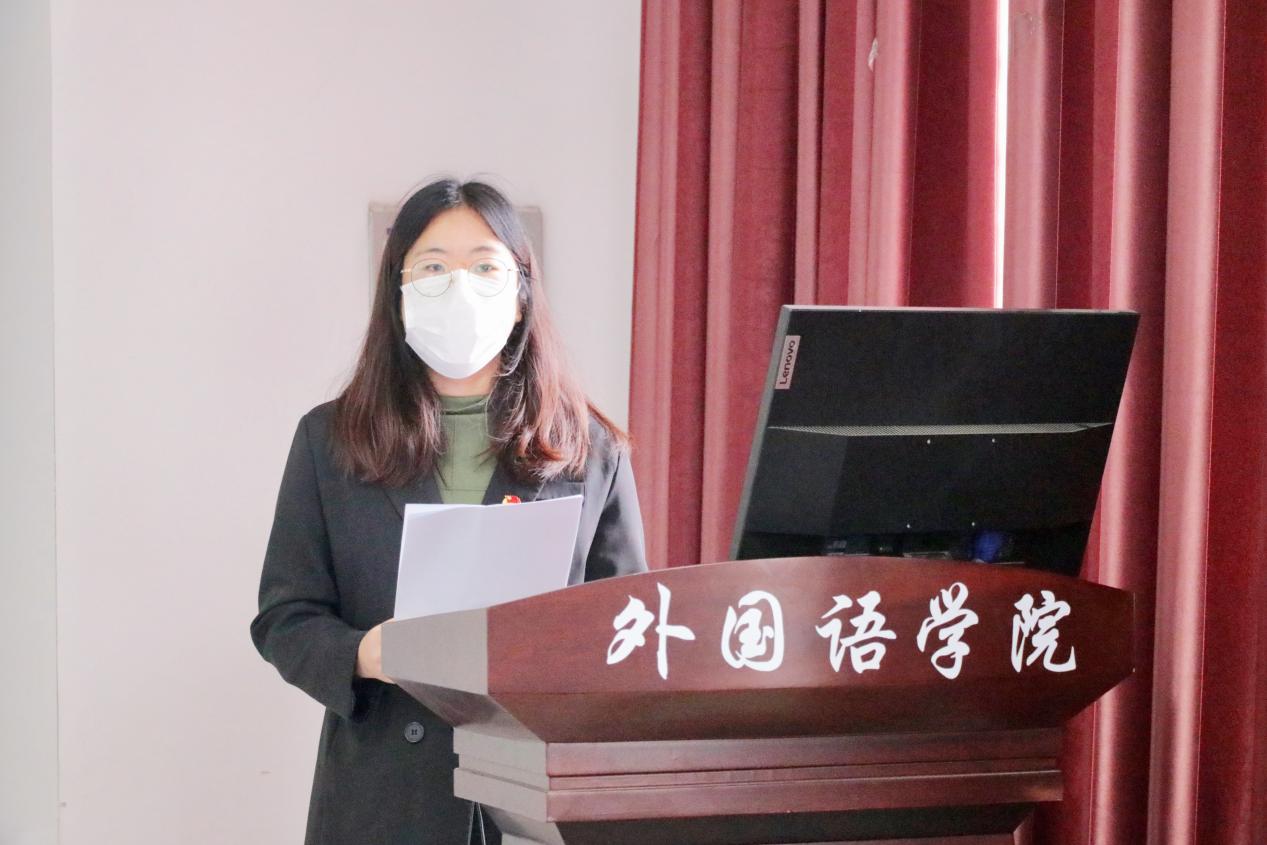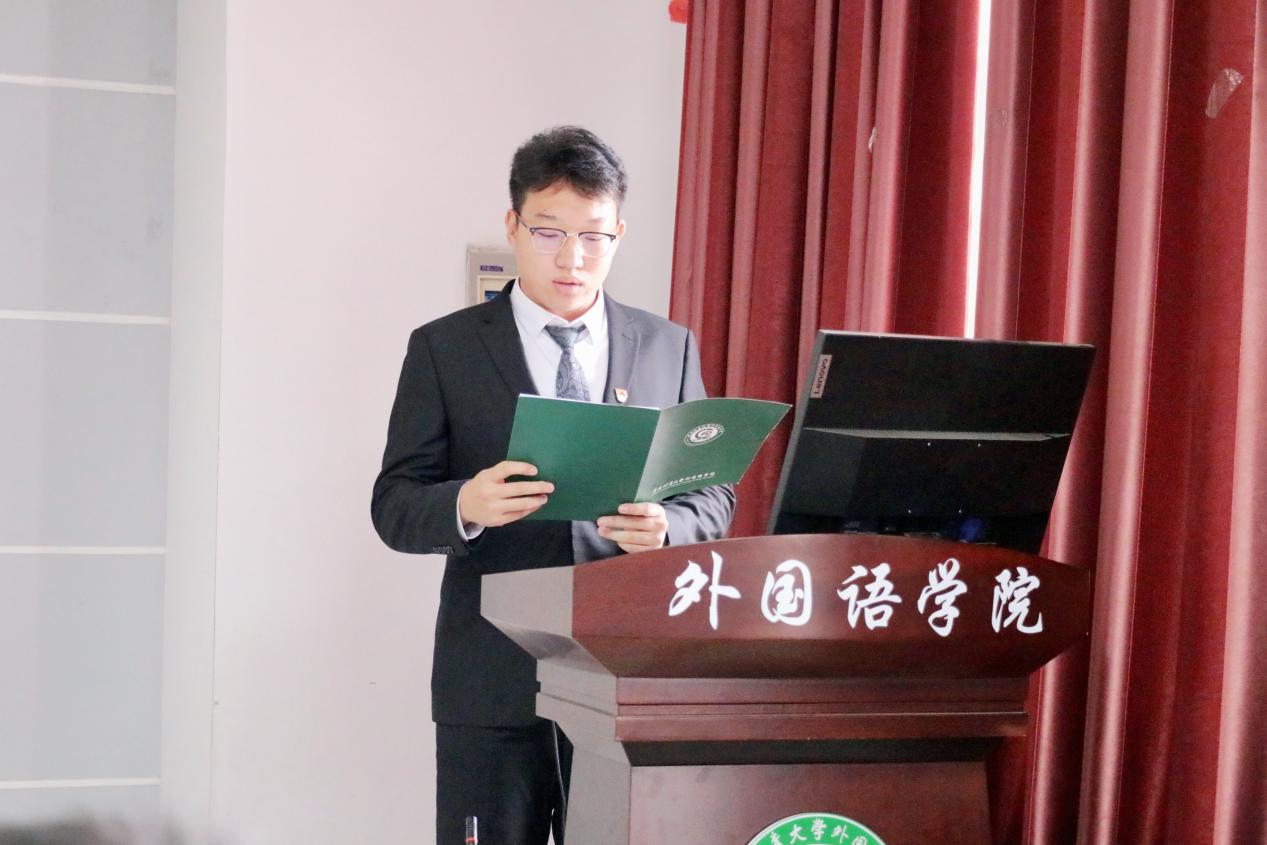 研究生代表宣读了《云顶国际yd333第三届研究生会工作报告》。因云顶国际yd333第三届研究生会第一任期执行主席姜颖同学毕业离校,报告由研究生会工作人员张季斌代为宣读。报告指出了过去一年中,研究生员工工作的优点:各个部门积极工作,协同展现了丰富多彩的活动,良好的展现外语研究生们的精神风貌。同时,报告中也总结了过去一年工作上的不足之处:例如缺少沟通,日常性工作的监督和管理较少等问题。