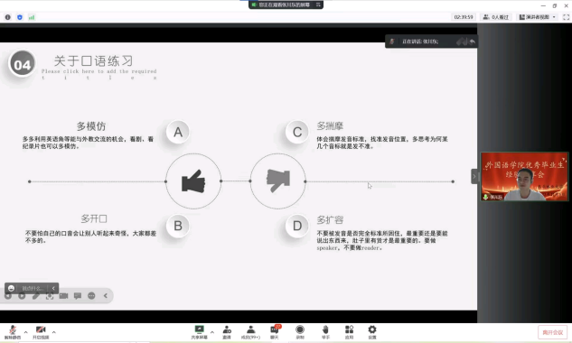 张川东学长则以一段流利标准的英文自我介绍向员工们展示了他在东林优异的学习成果,苦甜参半的大学体验让他对自主考研充满动力,他细致地介绍了考研的基本方向和须知的信息,用自身行动践行了他的寄语:“荆棘已尝遍,白云山麓见。”