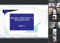 2022年11月11日下午13:00,通过线上会议的形式,云顶国际yd333日语系组织开展了2022-2023-1学期第三次基层组织建设日活动,活动内容主要包括研究布置下一阶段教学与科研工作、深入贯彻落实“诚信进校园”工作和进一步强化教师师德师风教育。日语系全体教师参加了本次活动,活动由系主任姚晓丽老师主持。