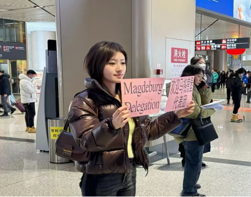 英语口译专业的王飞、许馨和英语专业的赵春蕊三位志愿者为德国马格德堡代表团提供联络和接待服务,他们带领嘉宾们前往哈尔滨新区德国中心研究院,并引领外宾们参观、出席了太阳岛雪博会、哈尔滨国际冰雪节开幕式、犹太老会堂、索菲亚教堂和中央大街等地标性景点。在分别之际,外宾们对三位志愿者四天的辛勤工作表达了衷心的感谢,并赠送了巧克力、香薰等礼物以示嘉许。