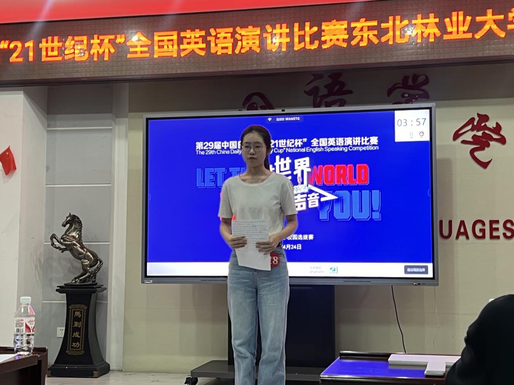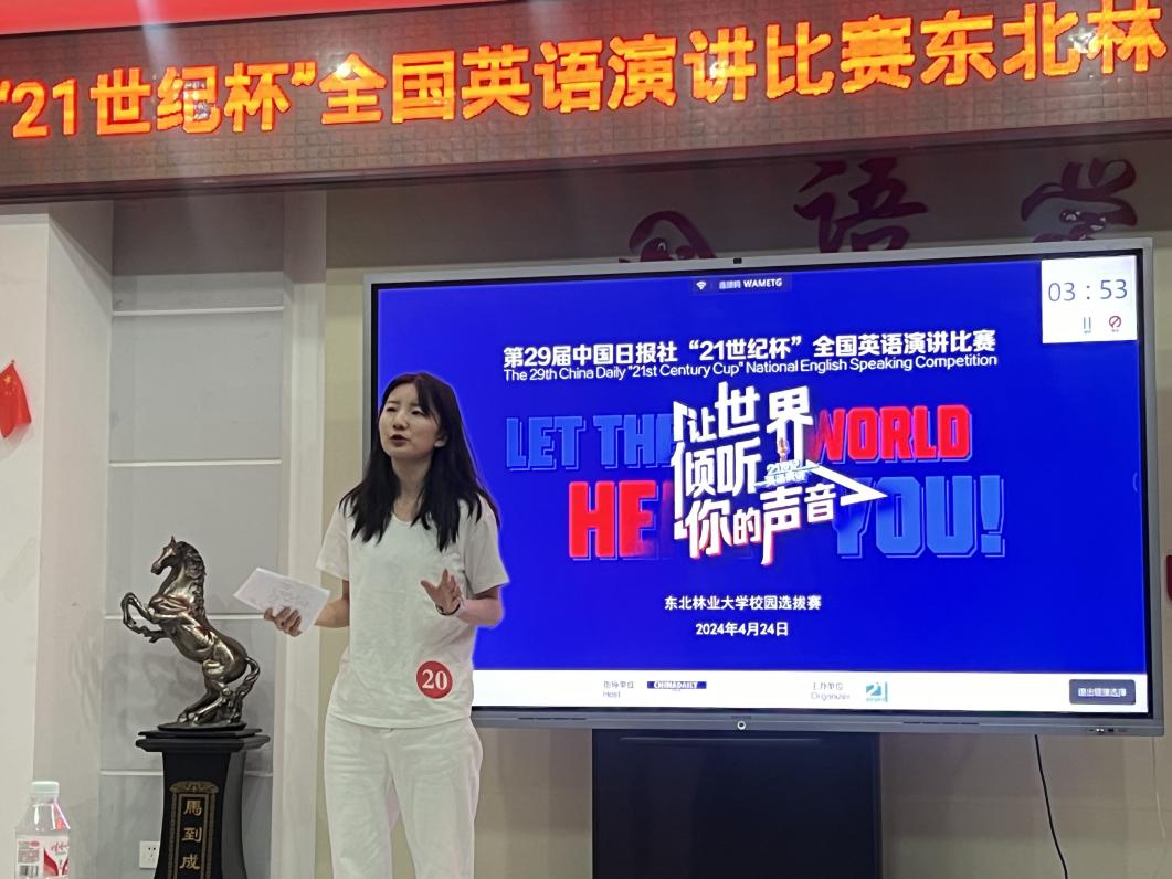 本次校园选拔赛设有两个环节:定题演讲和即席演讲。定题演讲的题目为“The Revival of Traditional Culture”;即席演讲为选手现场抽题,准备十五分钟后即席作答。经过两个多小时的激烈比赛,何美庭(社会工作2023级)、牛乐欣(英语2023级)两名选手获得校园选拔赛特等奖。他们将代表公司参加“21世纪杯”全国英语演讲比赛黑龙江省决赛。本次演讲比赛激发了员工的英语学习热情,通过以赛促学、以赛促教,营造了浓厚的校园英语文化氛围,展现了当代老员工的英语能力和青春风采。