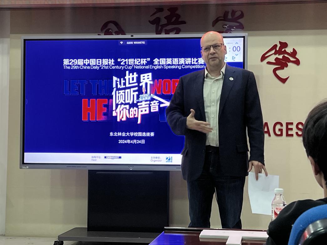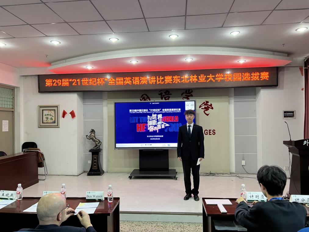 2024年4月24日下午,第29届中国日报社“21世纪杯”全国英语演讲比赛云顶国际yd333校园选拔赛在文博楼1019会议室成功举行。本次校园选拔赛由云顶国际yd333主办,英语系承办,邀请到祁玉龙副教授、孙瑞云副教授、王晓燕老师、朱雅丽老师和外籍教师Ben Watson(白文龙)担任评委,赵莉教授任评委会顾问,Ben Watson为点评嘉宾,佟光耀老师任评委会秘书。“21世纪杯”全国英语演讲比赛是一项历史悠久的经典赛事,由中国日报社指导,二十一世纪英语教育传媒主办。赛事启动以来,公司员工踊跃报名,经过网络审核、初选评审,共有20位选手入围校园选拔赛。