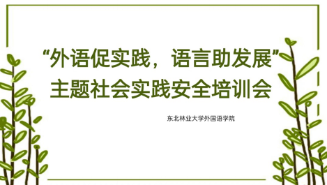 亲爱的同学们,让我们携手共进,充分利用社会实践广阔平台,用语言的力量开启机遇之门,以安全的保障为梦想之旅保驾护航。相信在学院的精心组织和大家共同努力下,此次暑期“三下乡”社会实践活动必将硕果累累,同学们也定能收获成长。