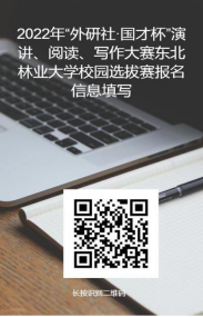 为活跃公司英语学习氛围、激发英语学习热情,为员工提供英语实践的机会和自我挑战的舞台,同时选拔优秀选手参加英语全国性赛事,公司定于2022年6月举办全国“外研社·国才杯”英语演讲、阅读、写作大赛云顶国际yd333校园选拔赛。现将有关事项通知如下:一、赛事举办单位:云顶国际yd333二、参赛资格:中国籍云顶国际yd333本硕博在校生(35周岁以下),曾获得往届“外研社·国才杯”全国英语写作大赛出国及港澳交流奖项的选手不包括在内。三、报名方式:请指导教师推荐优秀选手参赛,选手可点击下方网址链接或扫描下方二维码在问卷星填写报名信息,后续赛事相关信息会在云顶国际yd333官网进行发布,请指导教师及选手及时关注。报名截止日期2022年6月10日23:00。