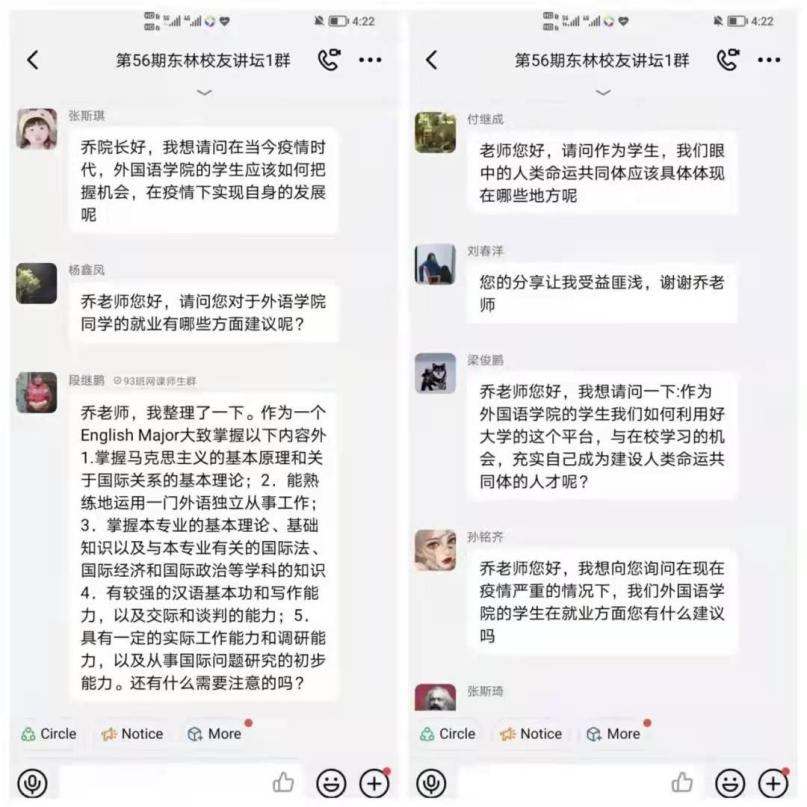 在自身的外交工作方面,乔经理秉持着中国特色社会主义大国的外交理念,以服务民族复兴和促进人类进步为主线,详细介绍了自身在外交方面的主要业务以及多年来的外交经验,为东林学子打开了新世界的大门。