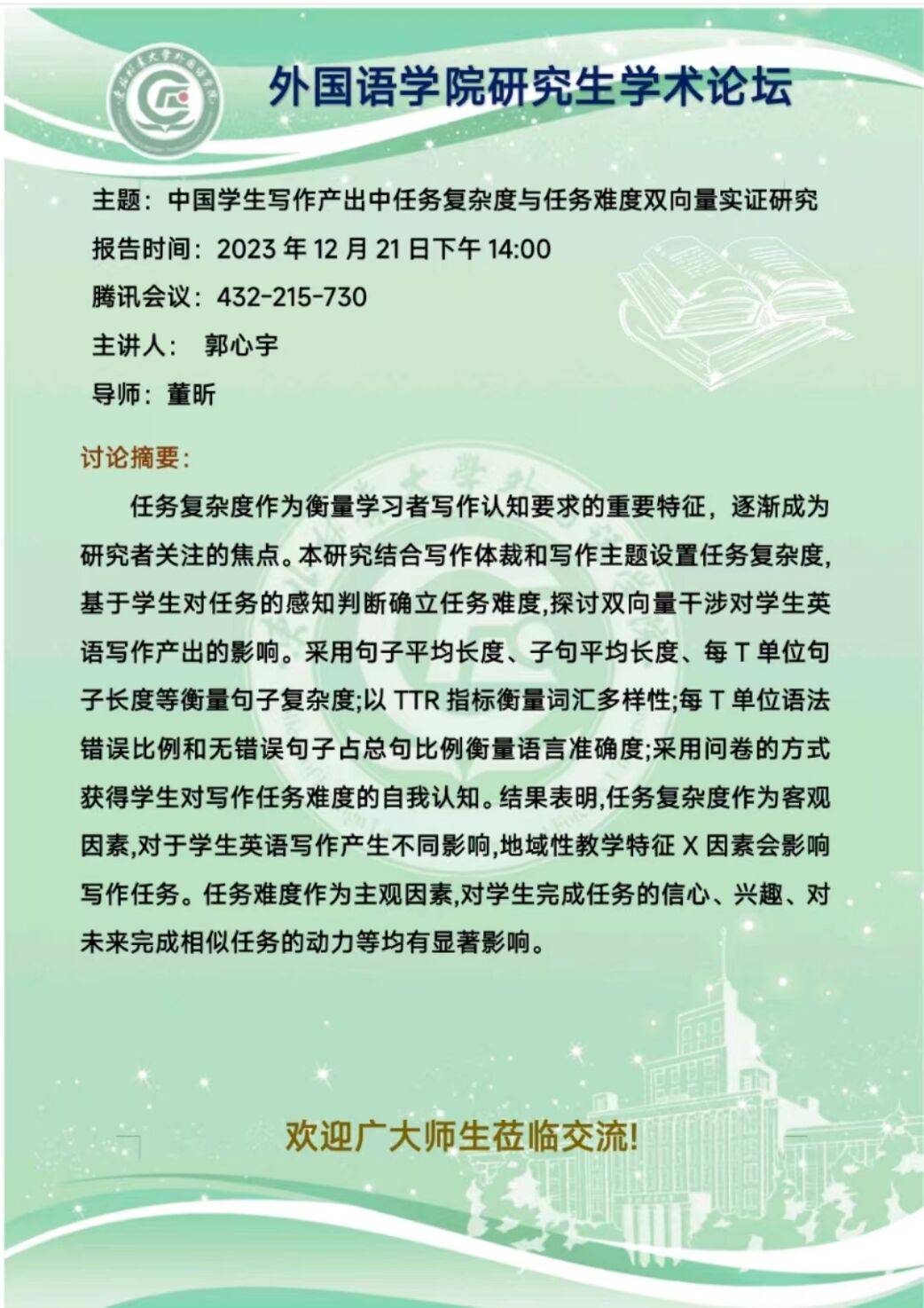 云顶国际yd333研究生学术论坛——中国员工写作产出中任务复杂度与任务难度双向量实证研究