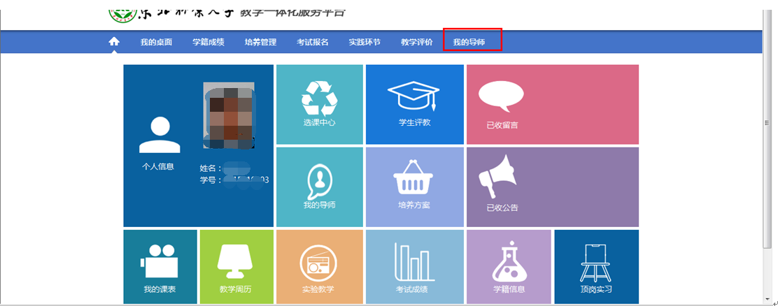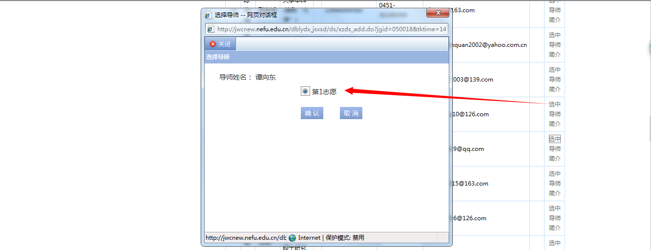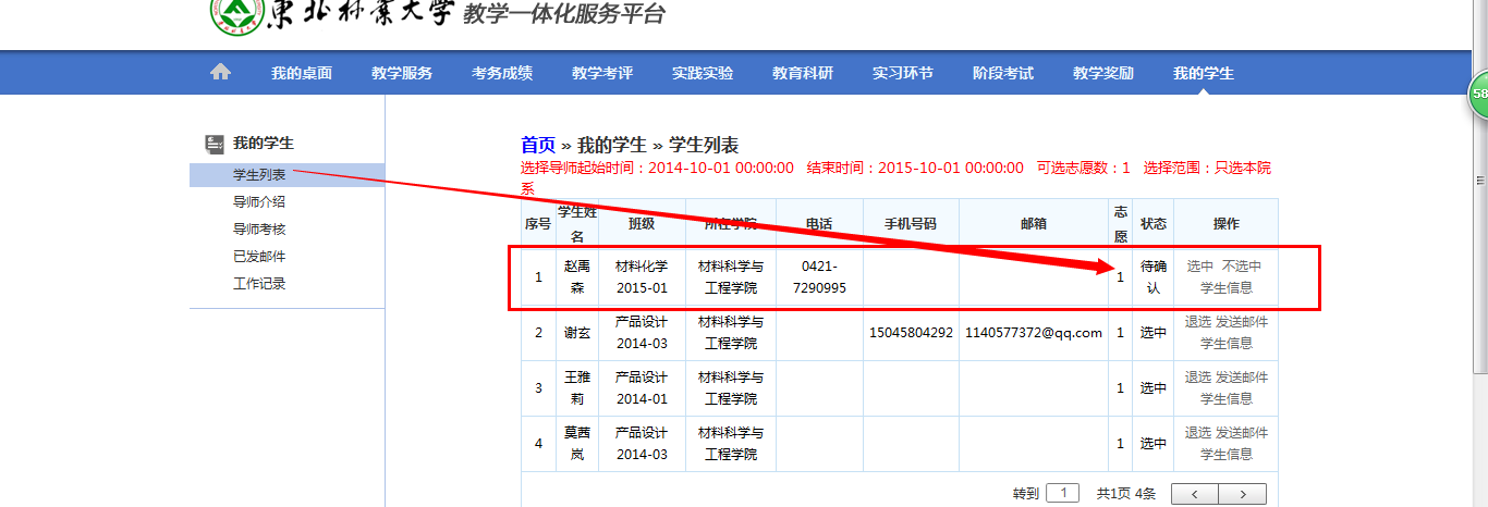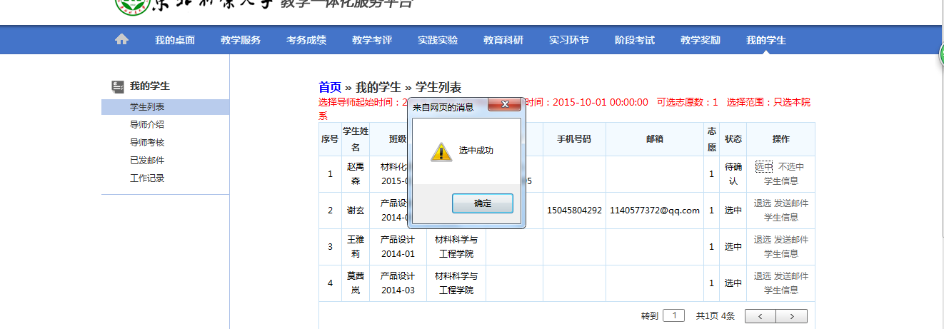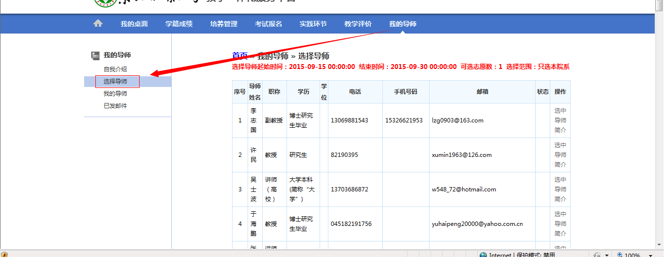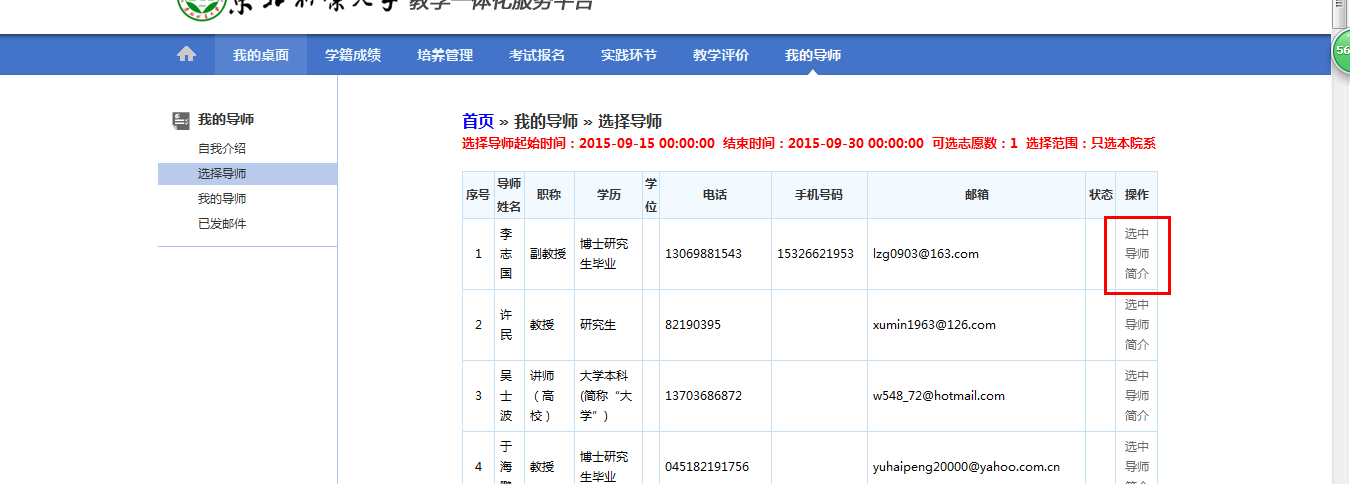 2.选择我的导师,页面会提示选导师的时间要求,及所有可选导师的信息