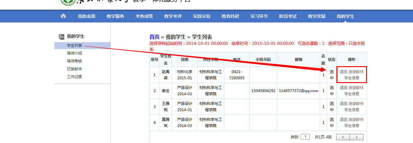 第二个菜单:设置师生互选的时间及可选报志愿及可选范围